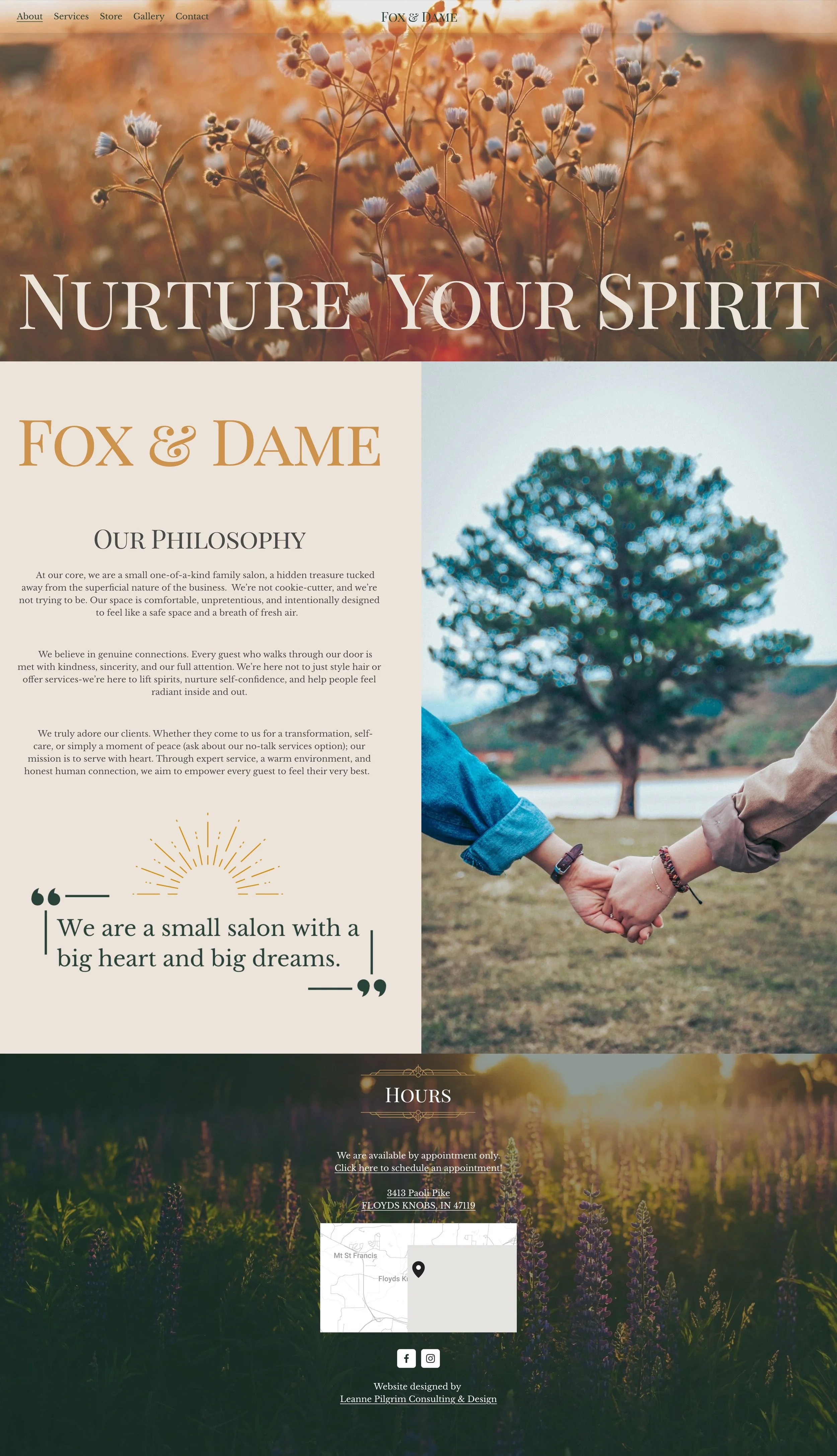 This client hired me to elevate their salon’s online presence with a design that reflects their focus on growth, rejuvenation, and natural beauty. My role included developing cohesive website copy and visuals that blend professionalism with a soft, floral aesthetic—capturing the warmth of their in-person experience while highlighting key areas like services, team introductions, product storefronts, and hiring opportunities.