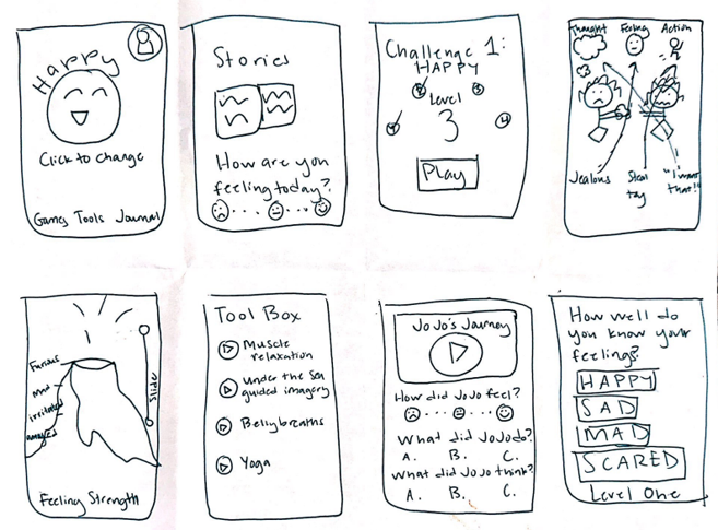 I completed the crazy eights and how might we design exercises to generate as many ideas as possible. I kept market gaps and suggestions from child therapists in mind when generating ideas.